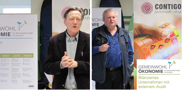 Referenten: Gerd Lauermann, GWÖ-zertifizierter Unternehmensberater aus Hamburg und Ralph Wüstefeld, Co-Geschäftsführer der CONTIGO Fairtrade GmbH