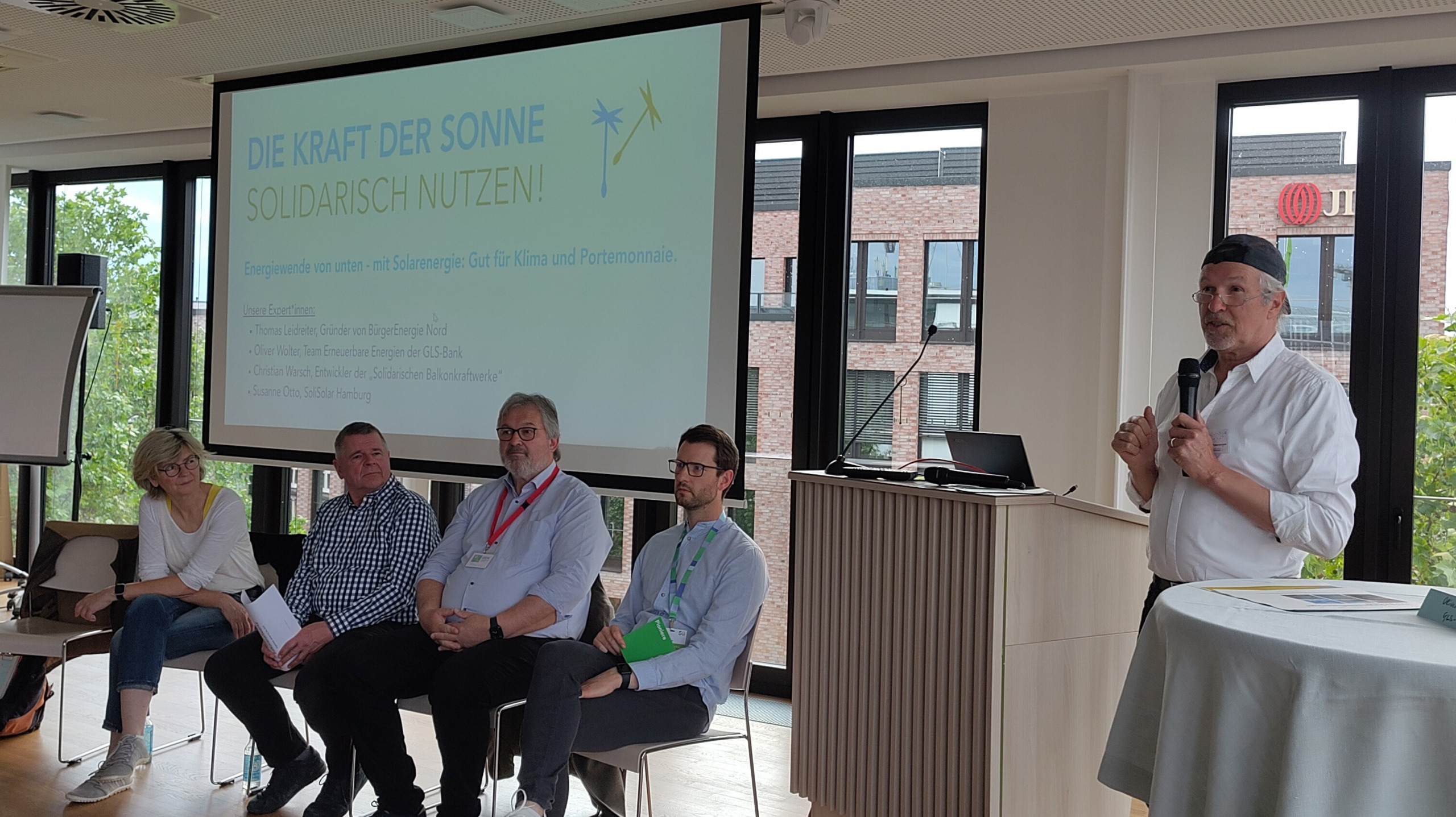 Abends am 5.6. im 5. Stock der GLS-Bank im Rahmen der Hamburg Sustainability Week konnte man viel über die Kraft der Sonne – und die eigenen Möglichkeiten, sie mehr und solidarisch zu nutzen erfahren. In einem städtisch beauftragten Gutachten wurde errechnet, dass unglaubliche zwei Drittel des Strombedarfs in Hamburg durch Sonnenstrom gedeckt werden könnten! Auch im Koalitionsvertrag wird ein massiver Ausbau als Ziel genannt, wovon zuletzt allerdings nicht viel zu sehen war. Die Chancen, dass sich das ändert, steigen, wenn jede*r von uns aktiv wird. Und dazu gab dieser Abend vielfältige Anregungen.