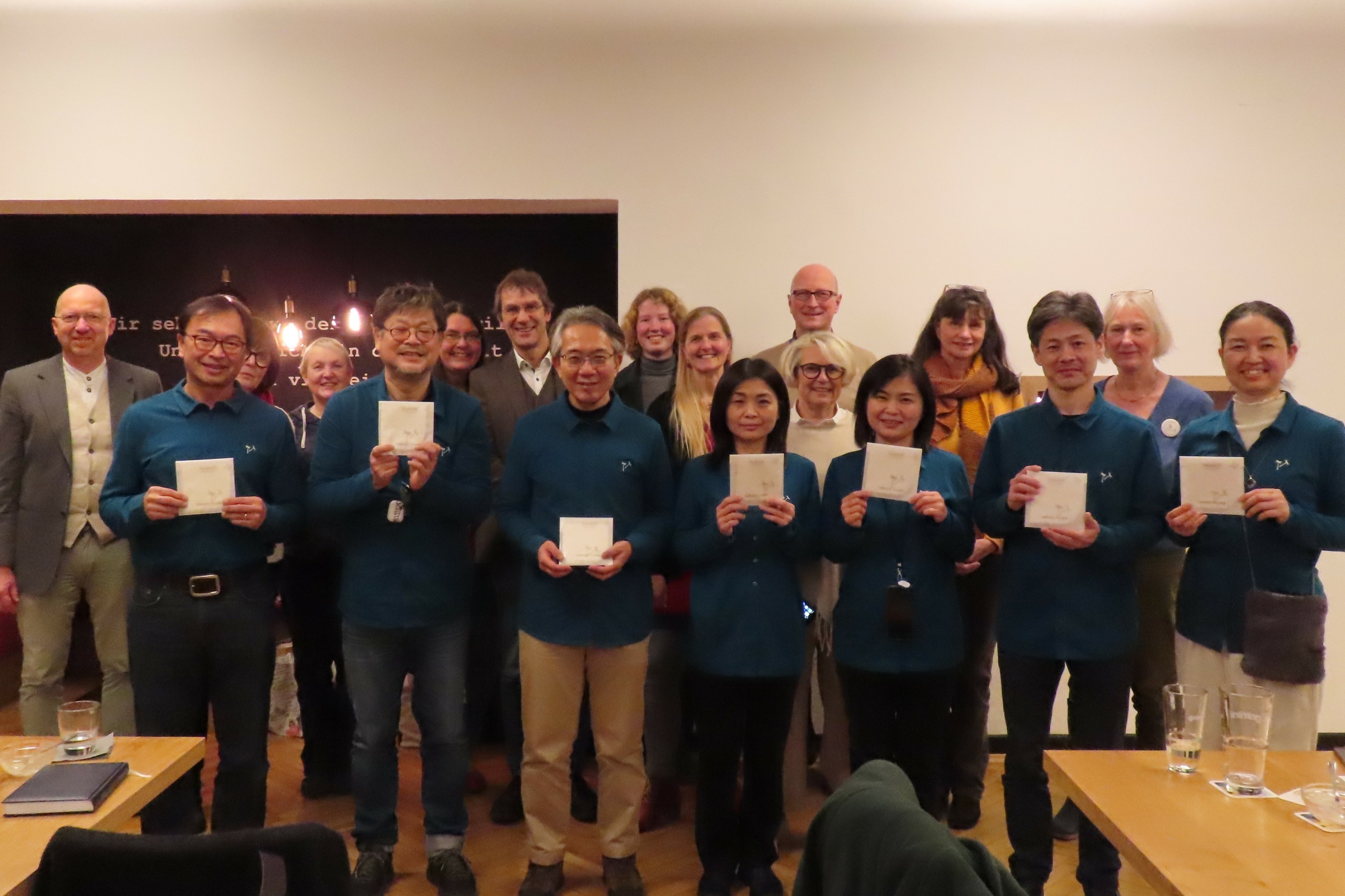 Der Mittwoch, der 31. Januar, stand ganz im Zeichen der Gemeinwohl-Ökonomie in OWL. Die japanischen Gäste besuchten zunächst den Diakonieverbund Schweicheln, eine der größten Gemeinwohl-bilanzierten Organisationen in Deutschland. Am Nachmittag wurde eine Vielzahl von GWÖ-Aktivitäten in der Region vorgestellt. Der Vorstand des GWÖ Deutschland-Vereins berichtete aus erster Hand über bundesweite Initiativen, während ein Gründer der Stiftung Gemeinwohl-Ökonomie NRW seine Motivation und Erfahrungen teilte. Auch interessant war der Fokus der GWÖ-Regionalgruppe Bielefeld auf den Arbeitskreis Bildung.