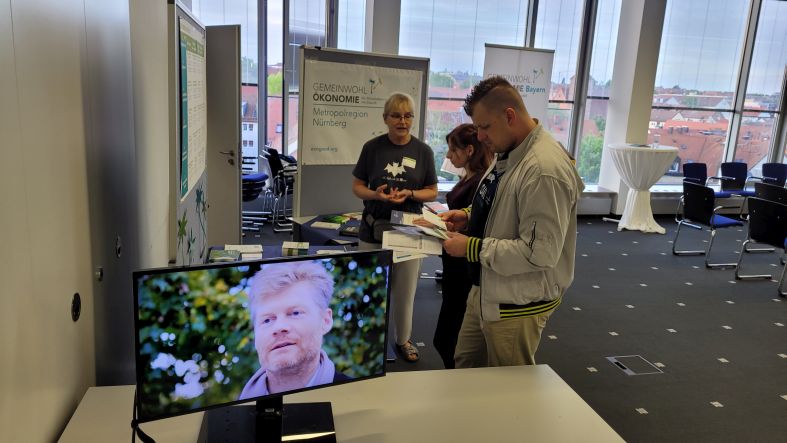 Unsere Regionalgruppe Metropolregion Nürnberg fungierte als eine der Partner*innen der Langen Nacht in der TH: Mit den großen Füßen am Boden des Flures zur Messung des eigenen persönlichen Fußabdruckes wurden die Besucher*innen in die Räume u.a. zu einer GWÖ-Ausstellung, einem GWÖ-Infostand und GWÖ-Vorträgen gelotst: Denn alle halbe Stunde fand jeweils ein Kurzvortrag mit Diskussion statt. Ein paar weitere Eindrücke zur Veranstaltung gibts nachfolgend:
