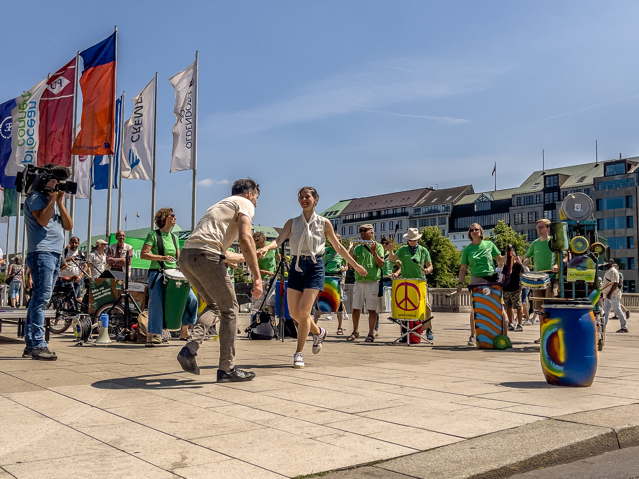 Das war eine wunderbare Aktion in der Innenstadt, bei der auch zu den Rythmen der Greenpeace Rainbow-Drums getanzt wurde!