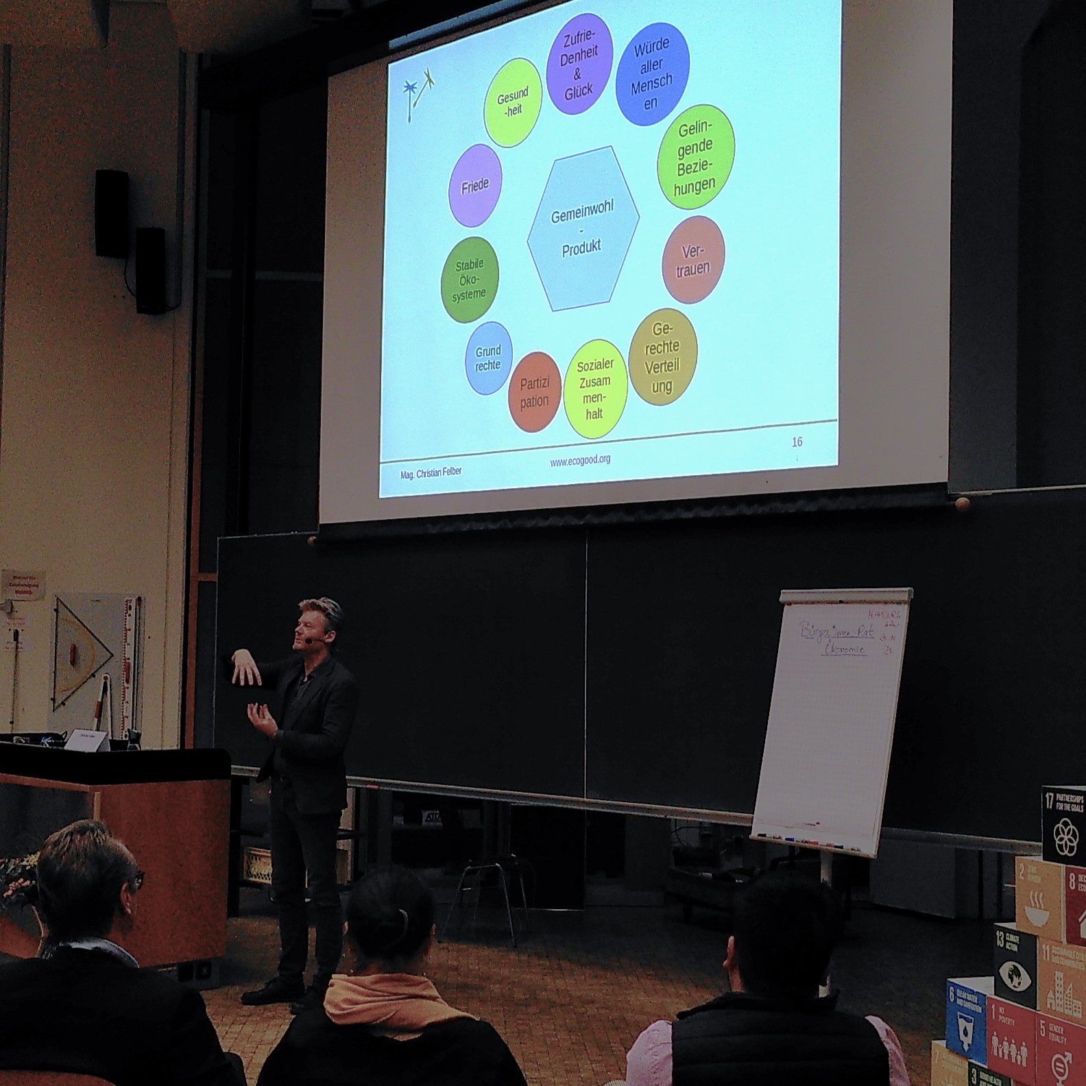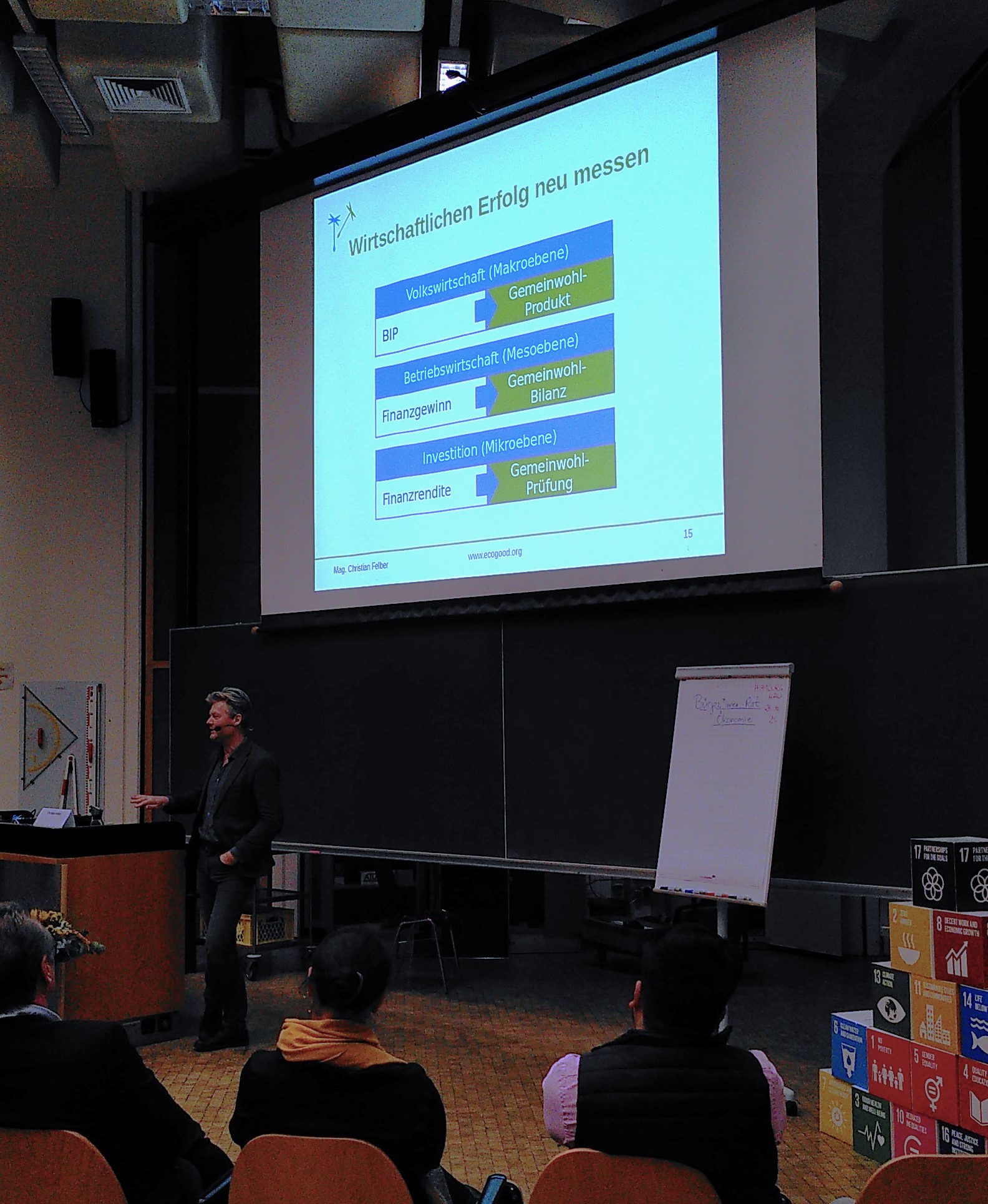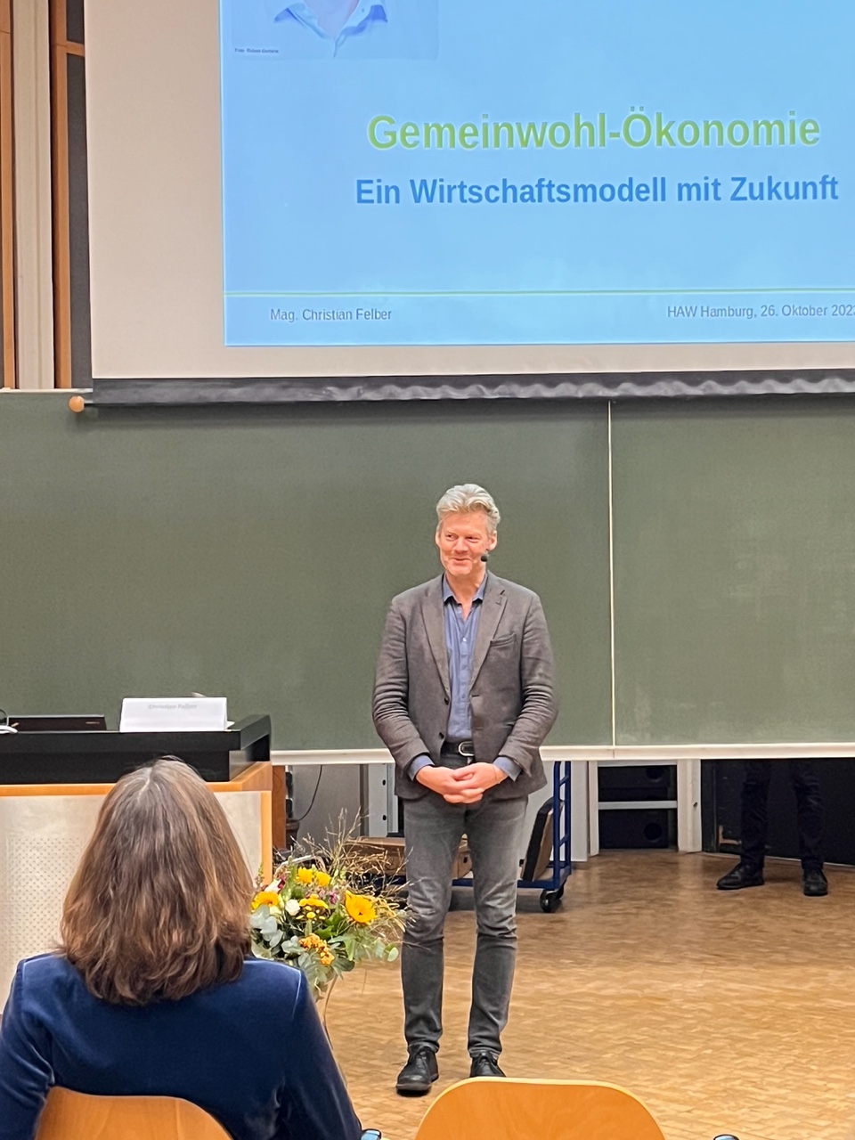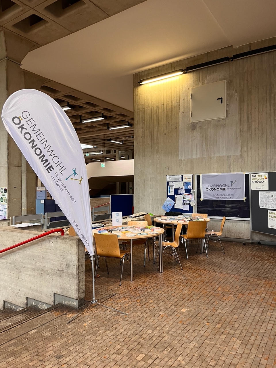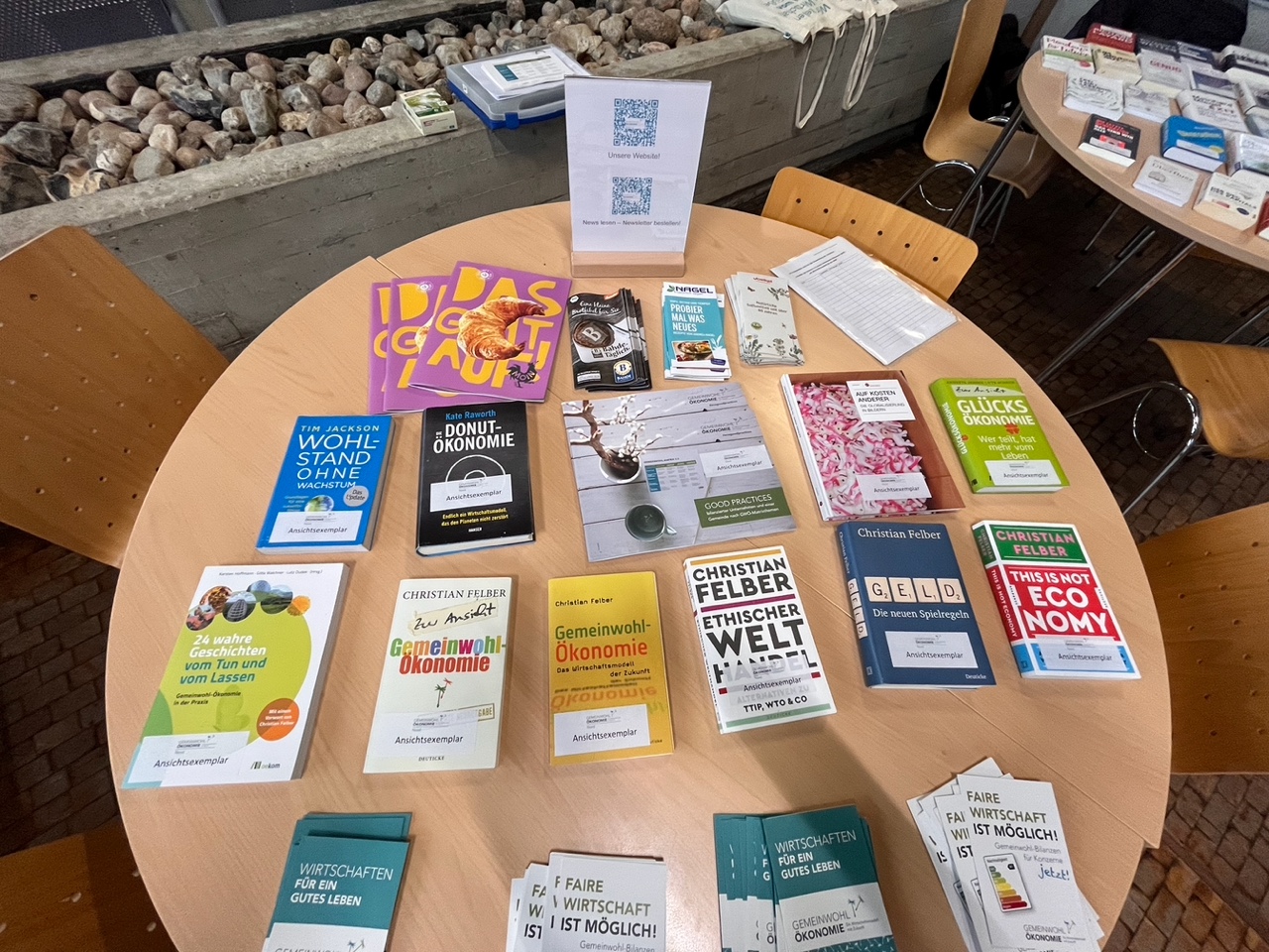 Weiterhin betreuten wir einen Info-Stand  mit mehreren Büchertischen, und freuten uns natürlich ganz besonders über den Vortrag und ein Wiedersehen mit Christian Felber, dem GWÖ-Gründer!