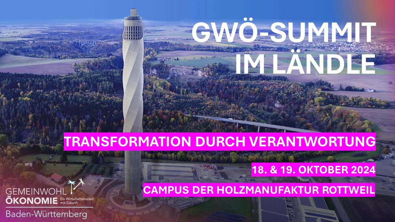 DAHER LADEN WIR DICH EIN ZUM ERSTEN „GWÖ-SUMMIT“ IM LÄNDLE AM 18. & 19. OKTOBER 2024 AUF DEN CAMPUS DER HOLZMANUFAKTUR ROTTWEIL