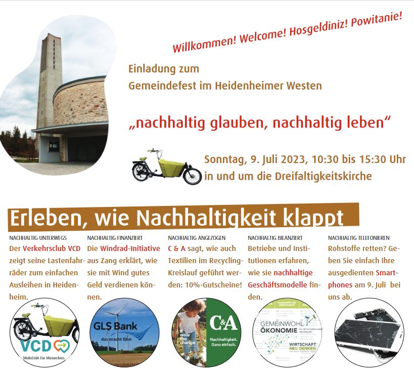 9. Juli, Info-Stand beim ökumenischen Gemeindefest in Heidenheim, Dreifaltigskeitskirche, 10.30 – 15.30 h