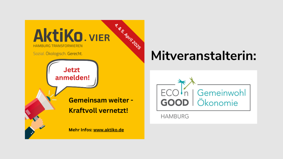Gymnasium Lerchenfeld Lerchenfeld 10, Hamburg, Deutschland"Es ist wieder so weit: die AktiKo geht in die nächste Runde und alle Akteur:innen aus Hamburgs großer und bunter Zivilgesellschaft können sich auf zwei spannende Tage freuen, an denen wir gemeinsam die sozial-ökologische Transformation unserer Stadt voranbringen wollen!" Und die Gemeinwohl-Ökonomie Hamburg ist dieses Mal Mitveranstalterin! Das Programm und Updates findet ihr [...]