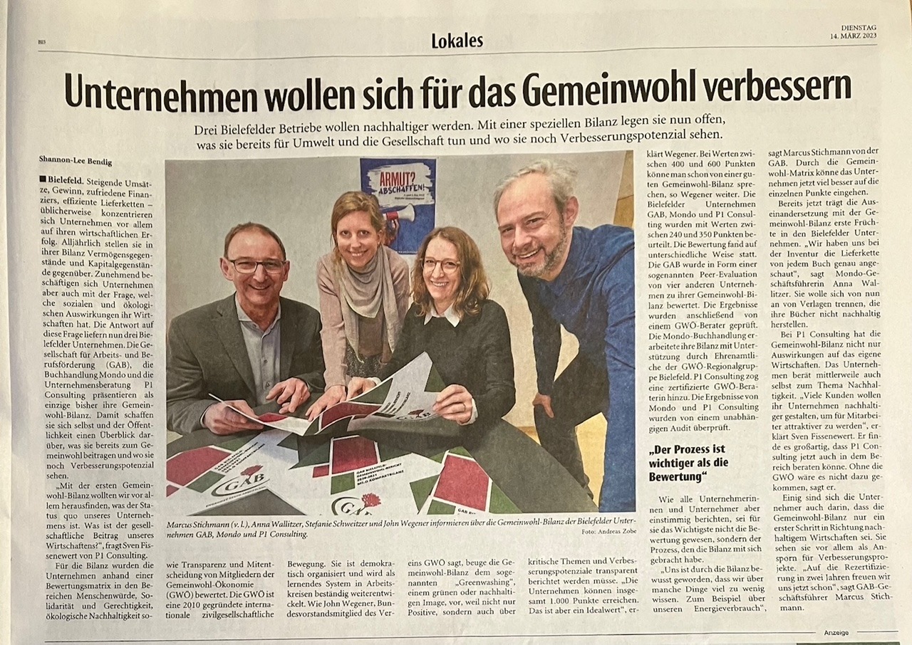 Gemeinwohl Bilanz Mondo – GAB – P1 Consulting