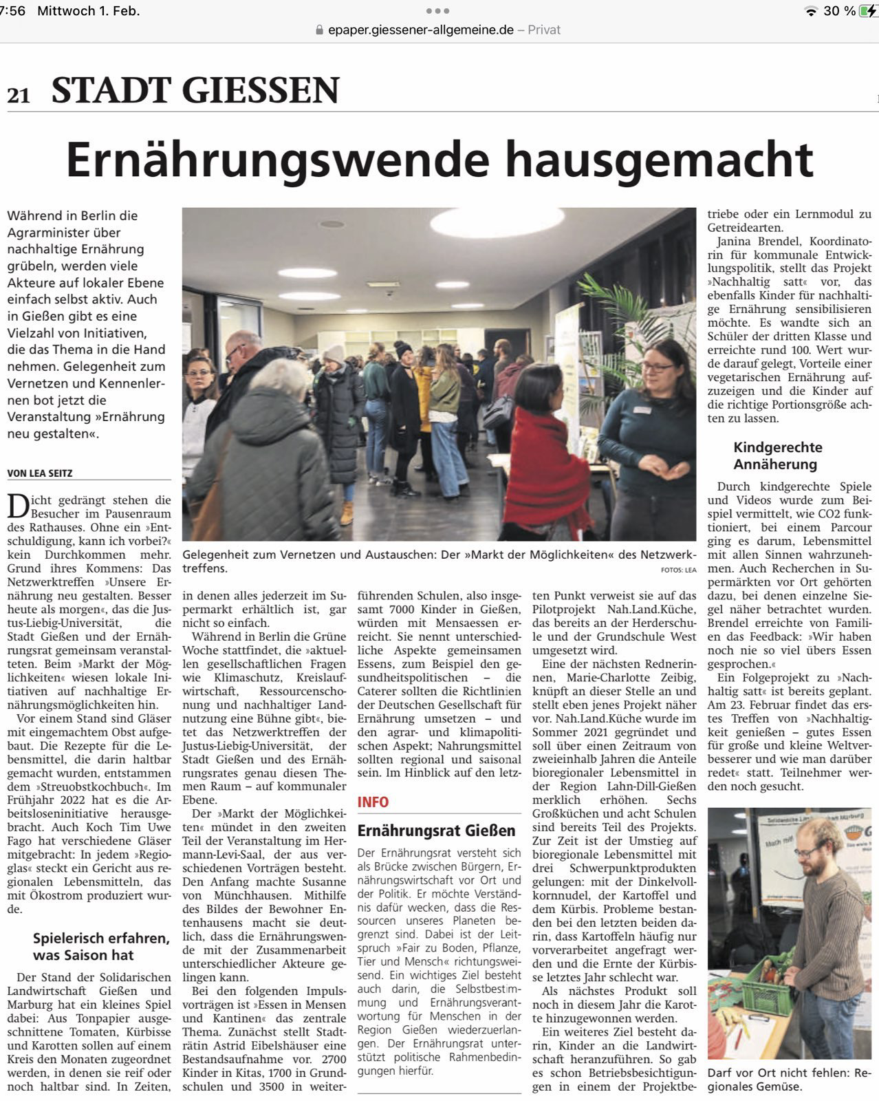 Großes Interesse am Stand der GWÖ, Vera Ronge im Gespräch mit der Presse und Anette Kurth stellt die RG Gießen vor. Zusätzlich noch der im Gießener Anzeiger erschienene Artikel zur Veranstaltung. Wir freuen uns!