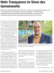 Vera Ronge und Peter Momper von der Regionalgruppe Gießen und das Unternehmen Hiestermann & Frömchen haben sich mit dem Gießener Anzeiger hinsichtlich Motivation und Herausforderung einer GWÖ-Bilanzierung ausgetauscht. Aber lest selbst Gießener Anzeiger