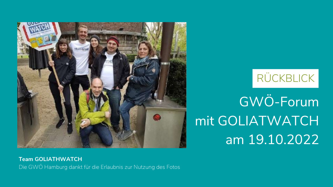 Nach langer Zwangspause fand am 19. Oktober 2022 wieder ein GWÖ-Forum statt – GOLIATHWATCH war unser Gast im Rudolf Steiner Haus. Marten Eggers und Dr. Thomas Dürmeier [...]