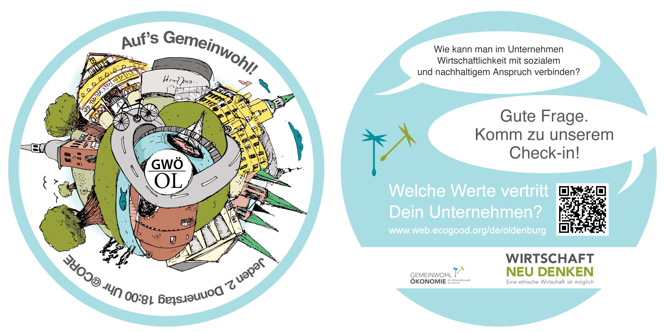 Einmal im Monat – momentan an jedem ersten Mittwoch – laden wir regelmäßig zum „Check-In“: Kurzer Input und gemütlicher Austausch zur Gemeinwohl-Ökonomie und gemeinwohlorientiertem Unternehmertum in Oldenburg und Umgebung.