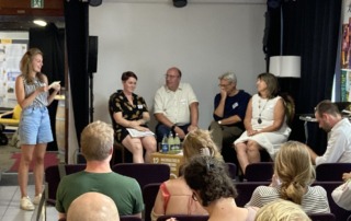 Alessandra Hensel (Geschäftsführerin GWÖ BW) im Gespräch mit Judith Stürmer, Norbert Knopf , Prof. Dr. Klaus Gourgé und Michaela Nowraty (v. l. n. r.)Foto: GWÖ BW Bilden die Finanzdaten des Bruttoinlandsprodukts (BIP) die gesellschaftliche Gesamtleistung ausreichend ab? Oder sind nicht vielmehr auch solche Indikatoren wichtig, die eine Orientierung von Wirtschaft und Verwaltung am Gemeinwohl messen lassen? Ein „Projekt Camp“ der GWÖ-Bewegung in der Gerlinger Mitmachzentrale ging vom [...]