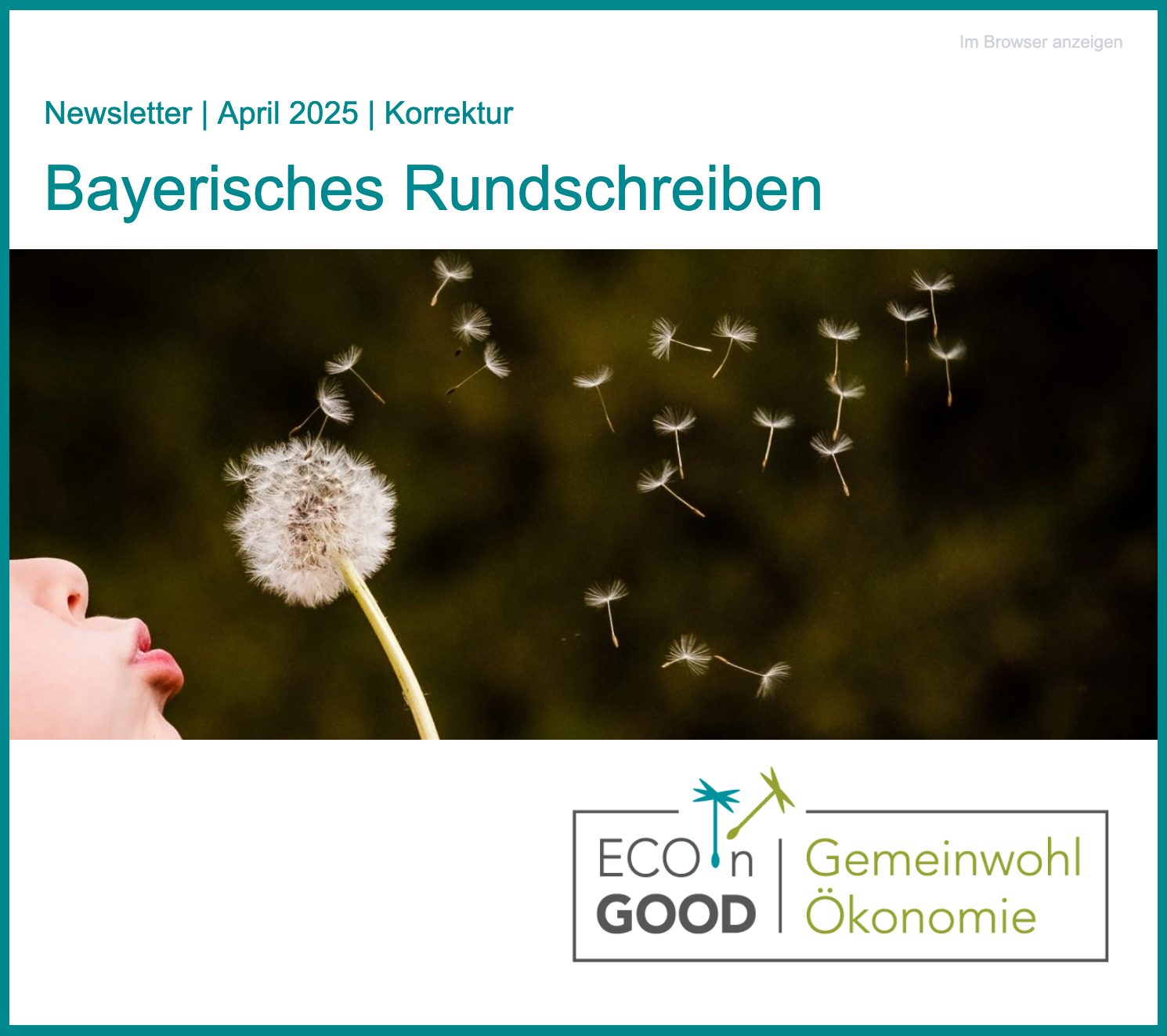 • Aufbreitung und Bereitstellung von Informationen rund um die Gemeinwohl-Ökonomie via allgemein erhältlicher über- und regionaler Newsletter (wie bspw. das „Bayerische Rundschreiben„)